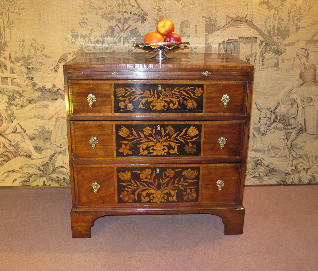 Dutch Late 18th Century Mahogany Marquetry Inlaid Bachelors Chest of Drawers