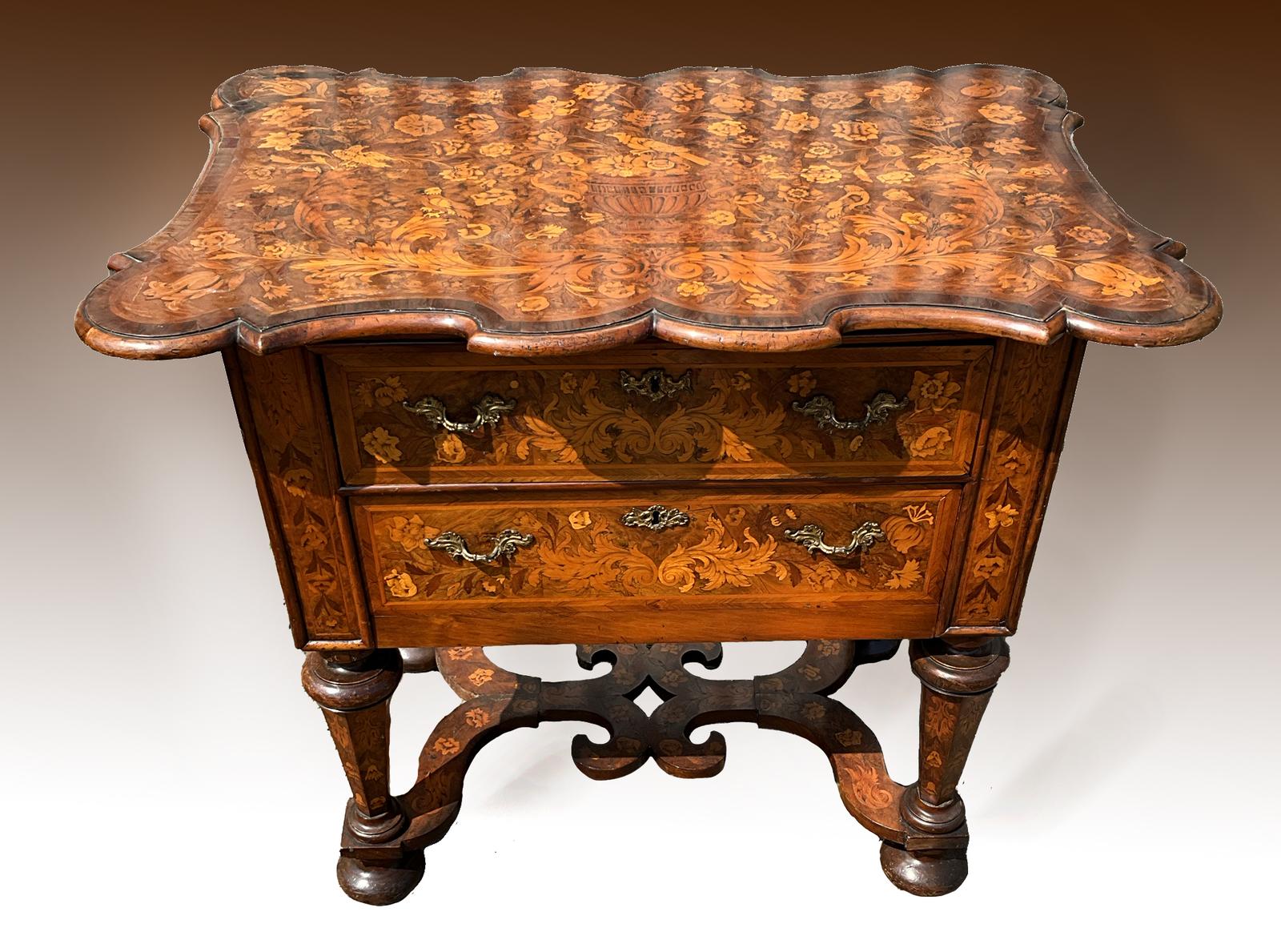 Dutch Marquetry & Walnut Two Drawer Side Table c.1820