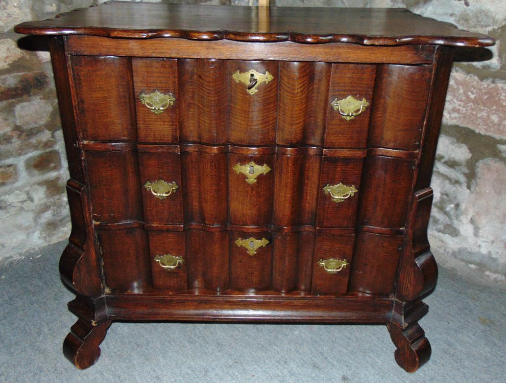 Dutch Oak Small Shaped Front Chest of Drawers