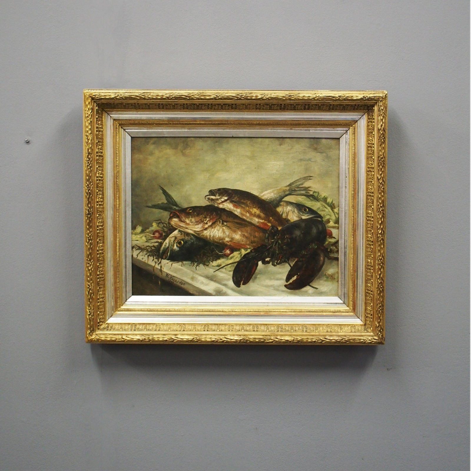 Dutch Oil Painting of Fish & Lobster by W. Voorendt (1 of 1)