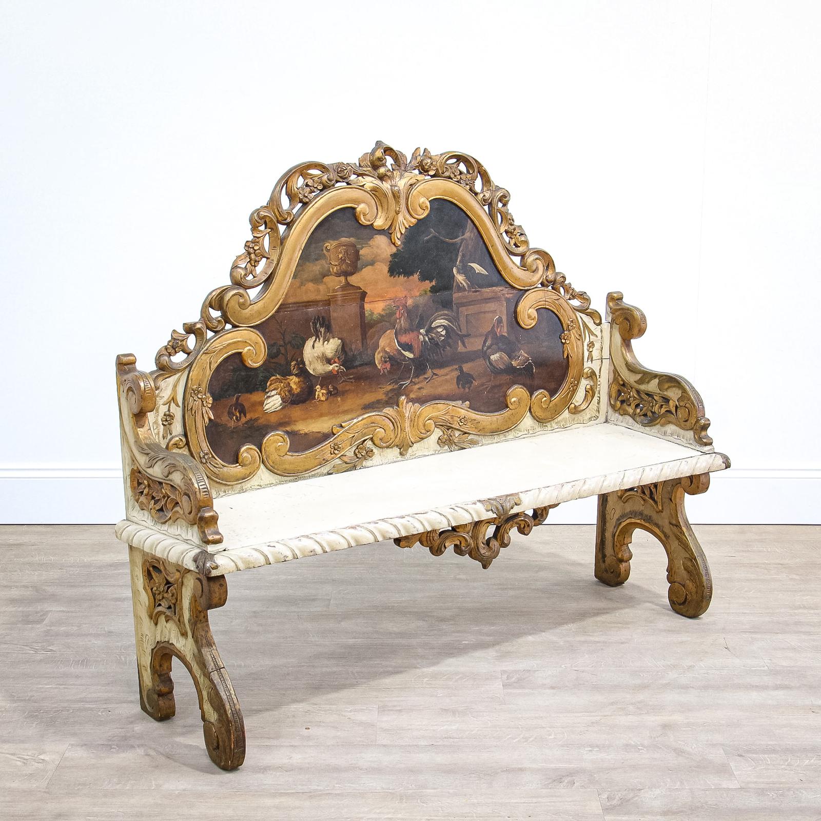 Dutch Settle with Finely Painted Scene of Fowl