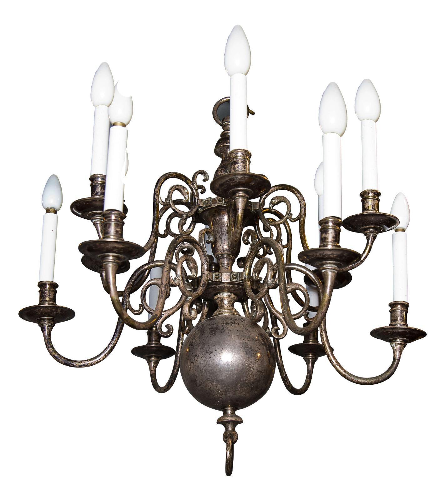 Dutch Style Silvered Chandelier with 12 Arms 'Rewired'