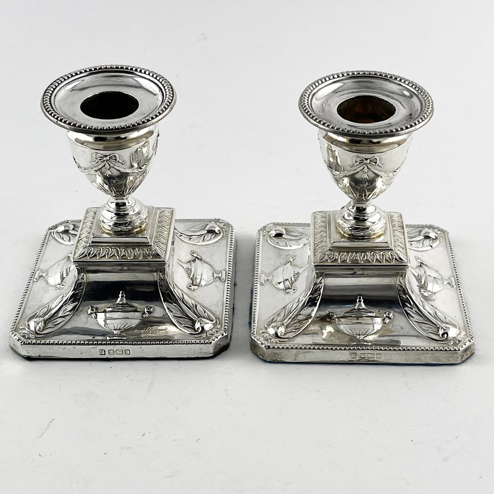 Dwarf Neo Classical Adams Style Edwardian Sterling Silver Candlesticks (1 of 7)