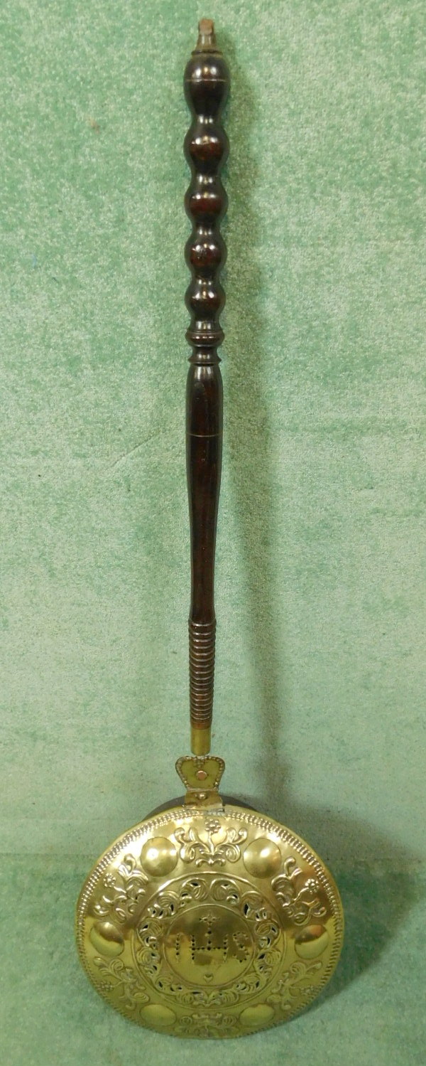 Early 1720 Dutch Brass Warming Pan Engraved I H S (1 of 1)