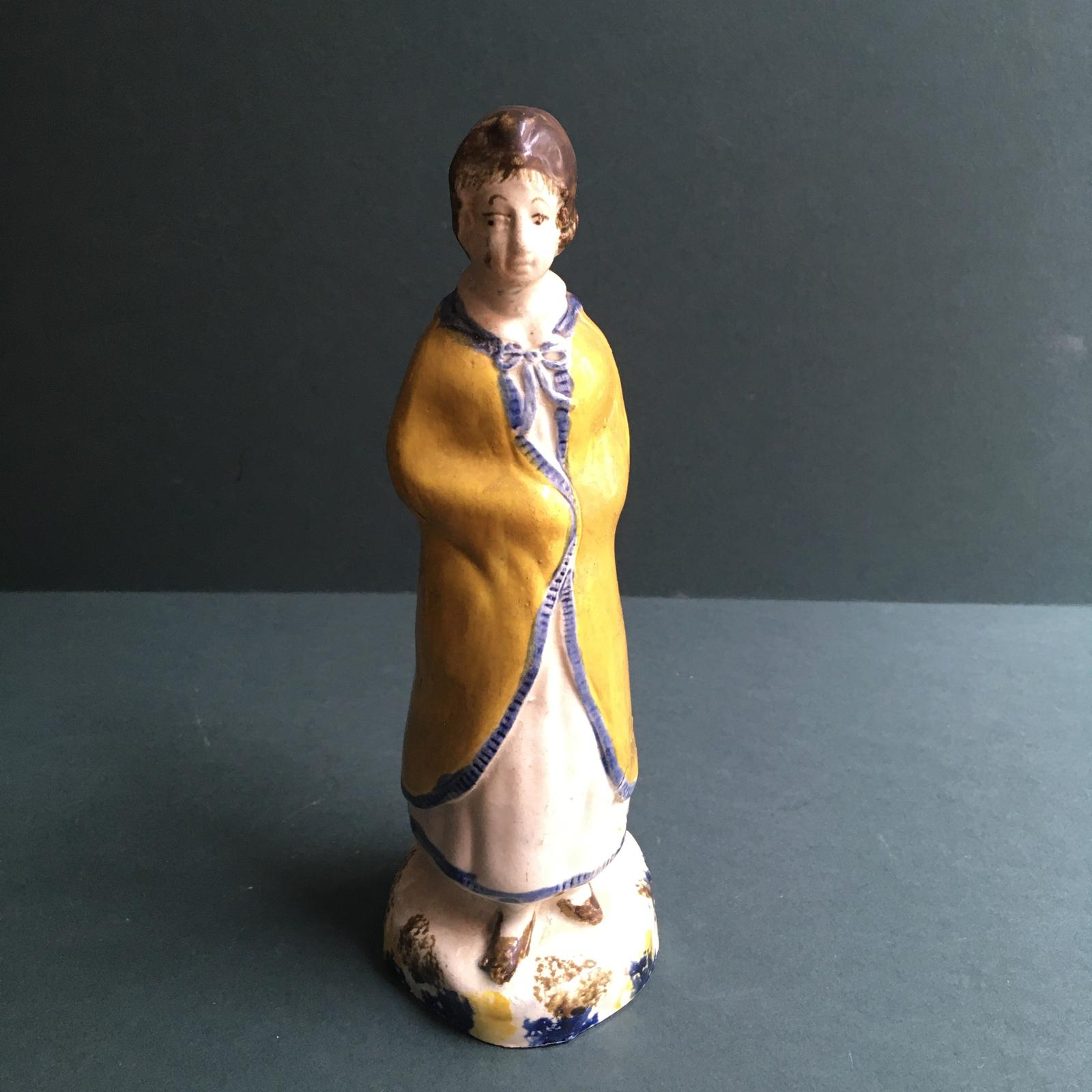 Early 1800s Prattware Figurine of Girl in a Splendid Yellow Cape