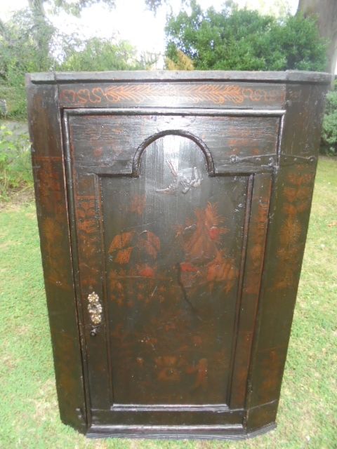 Early 18th Century Lacquered Japanned Hanging Corner Cabinet / Cupboard