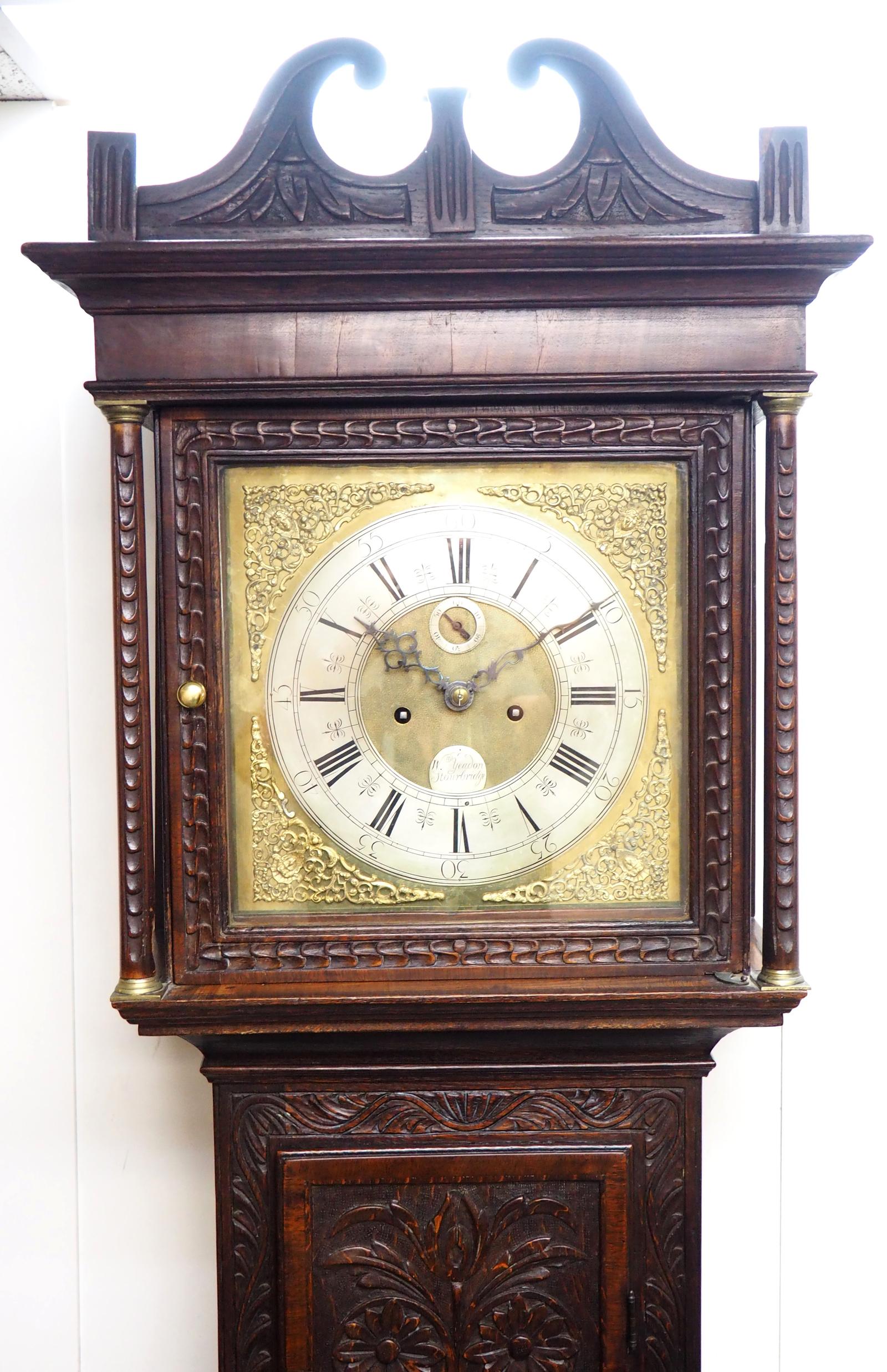 Early 18th Century Longcase Clock Fine English Carved Oak W.Yeadon Grandfather Clock Brass Dial c.1755