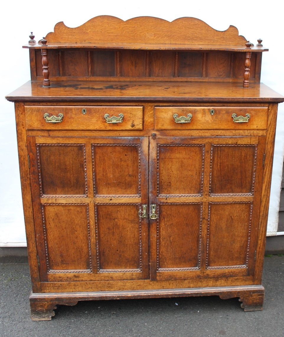 Early 1900s Carved Quality Oak Chiffonier with Back