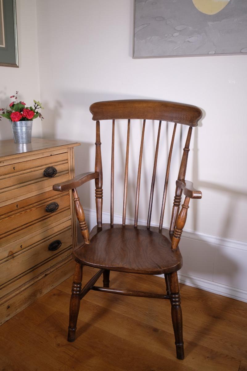 Early 1900's Stick Back Elbow Chair With Bobbin Details