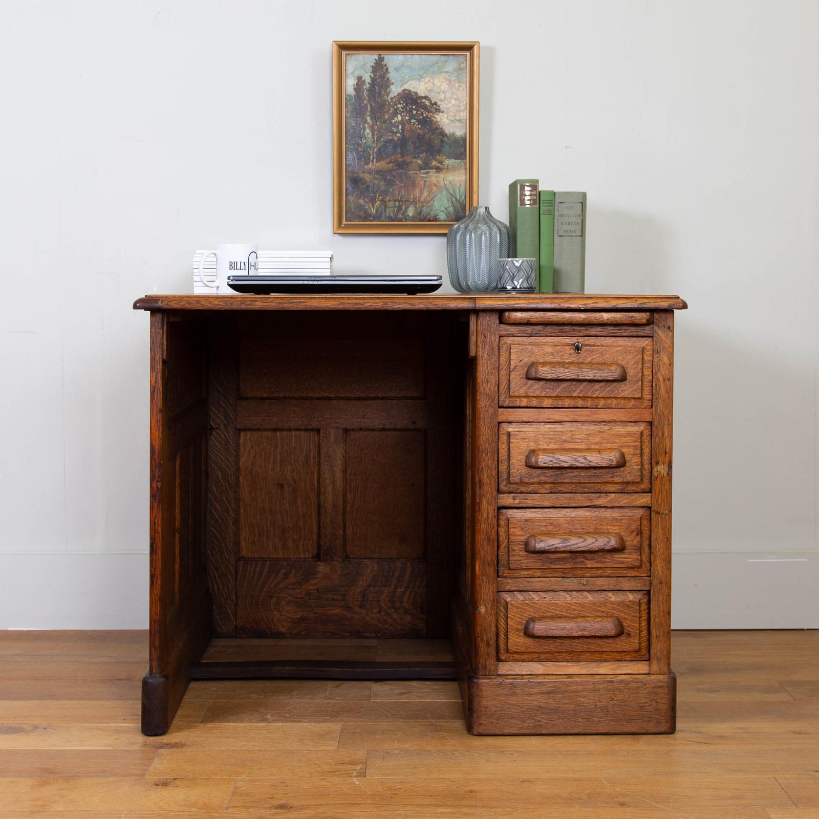 Early 1930s Oak Panelled Single Pedestal Desk (1 of 12)