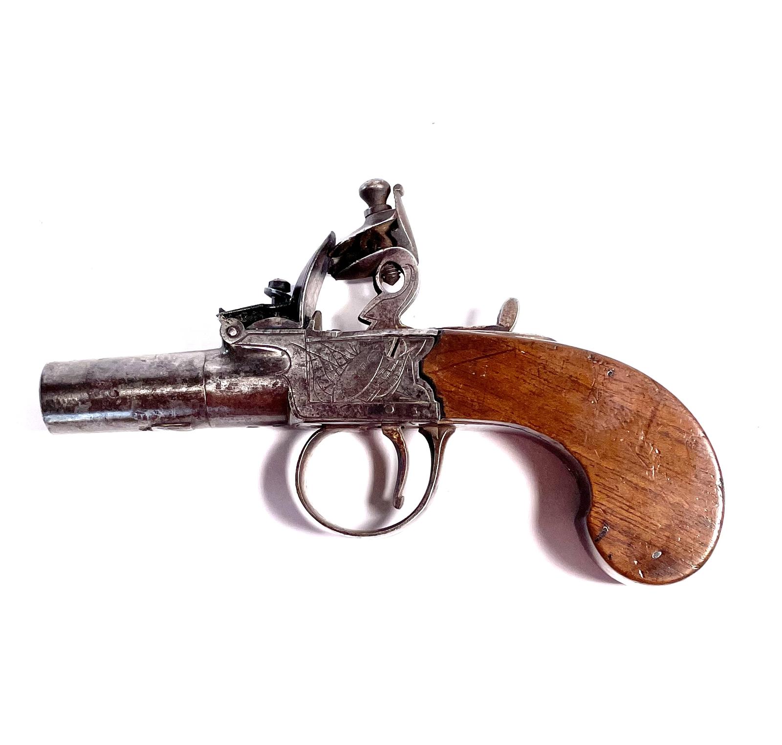 Early 19th Century 50 Bore Flintlock Boxlock Pocket Pistol by Boston, Possibly of Wakefield