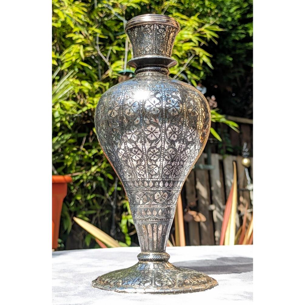 Early 19th Century Antique Indian Silver Inlaid Bidri Huqqa Hookah Base