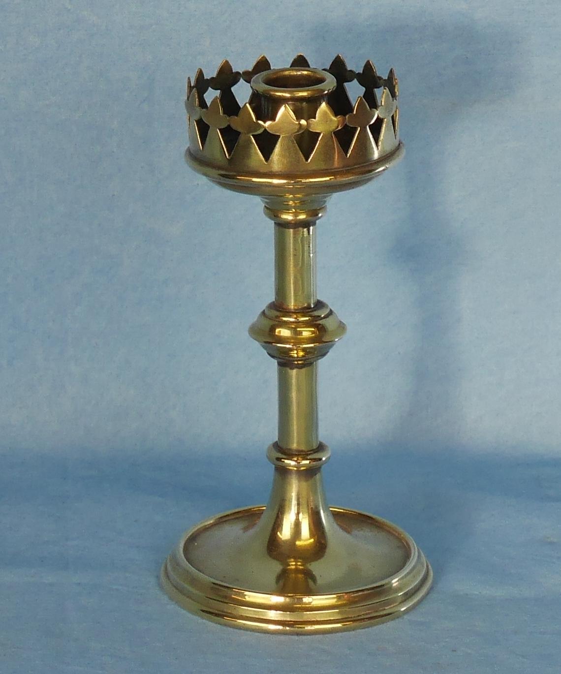 Early 19th Century Brass Candlestick with Fretted Drip Tray