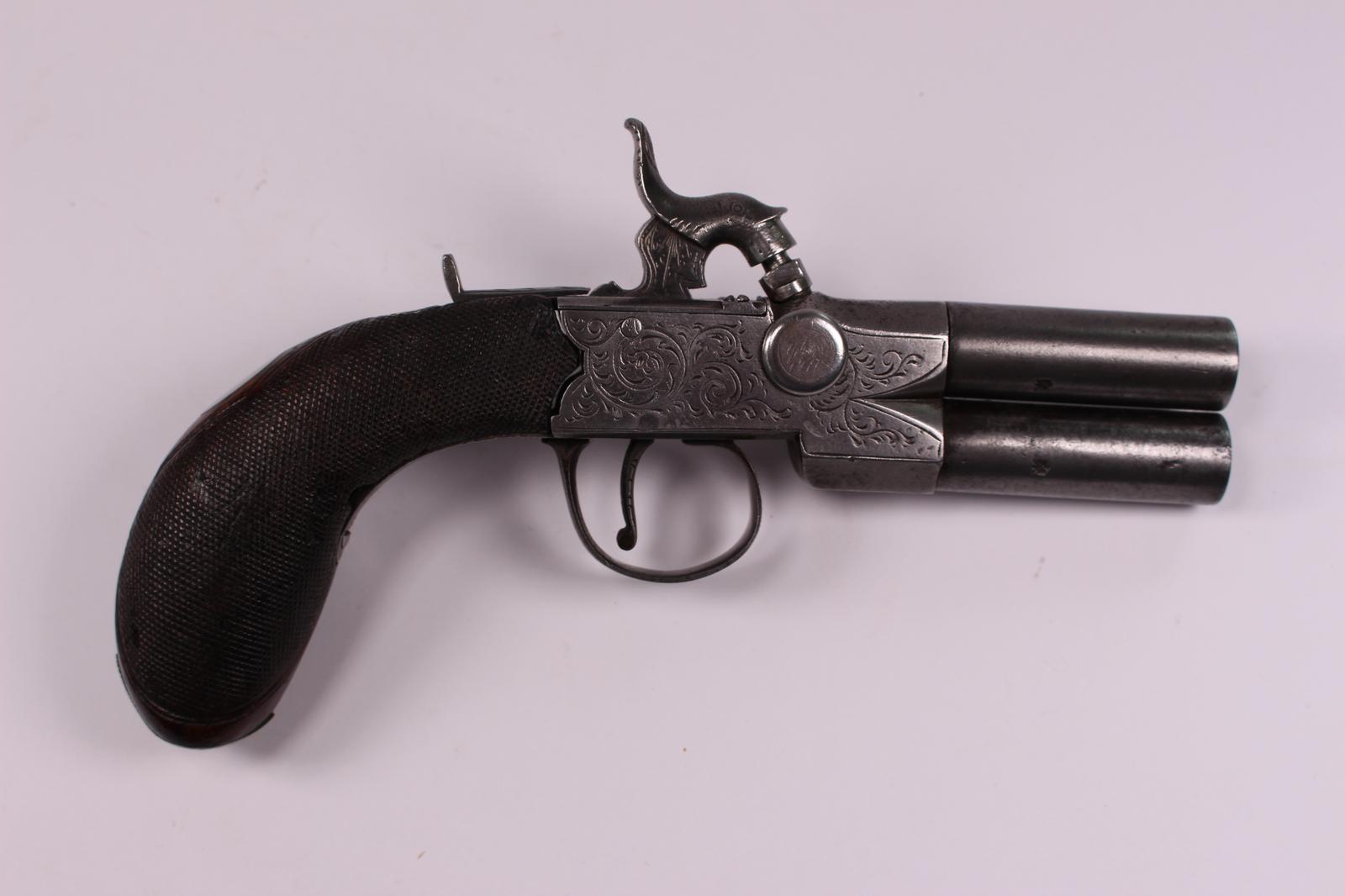 Early 19th Century Double Barrelled 80 Bore Percussion Box Lock Pistol