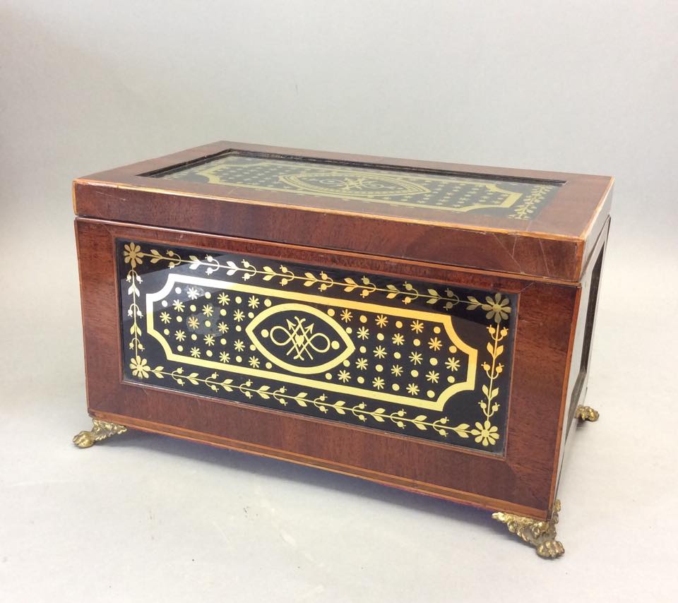 Early 19th Century Eglomise & Mahogany Caddy c.1810