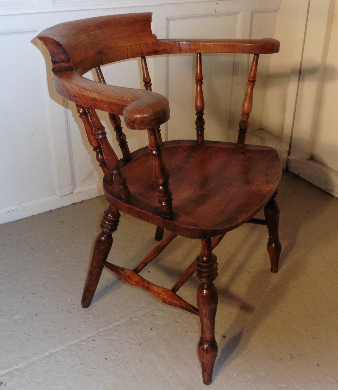 Early 19th Century Elm & Ash Smokers Bow Chair / Office Chair / Desk Chair