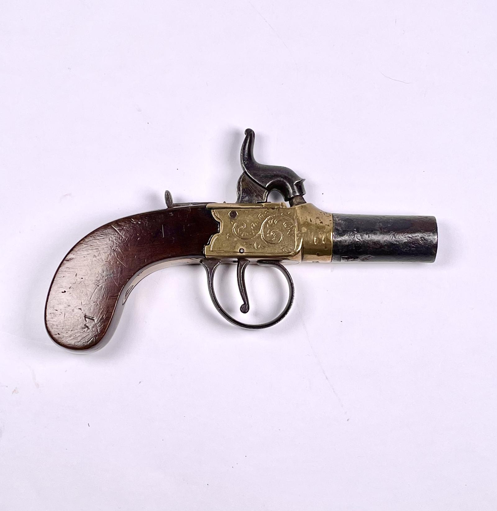 Early 19th Century English 50 Bore Brass Framed Percussion Boxlock Pocket Pistol