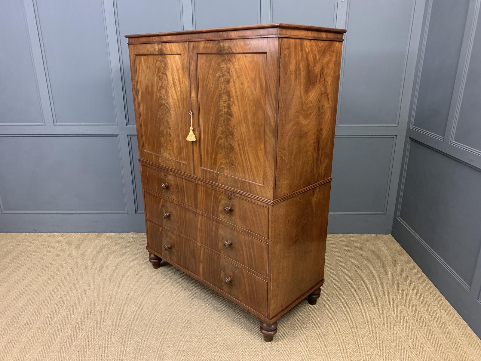Early 19th Century Flame Mahogany Linen Press (1 of 12)