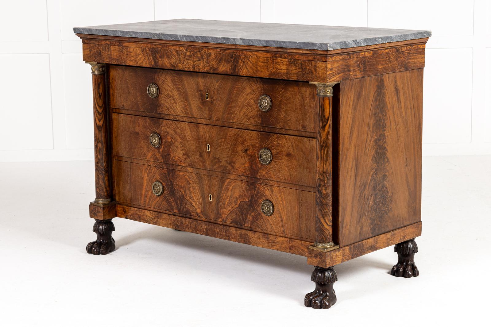 Early 19th Century French Empire Walnut Commode with Paw Feet