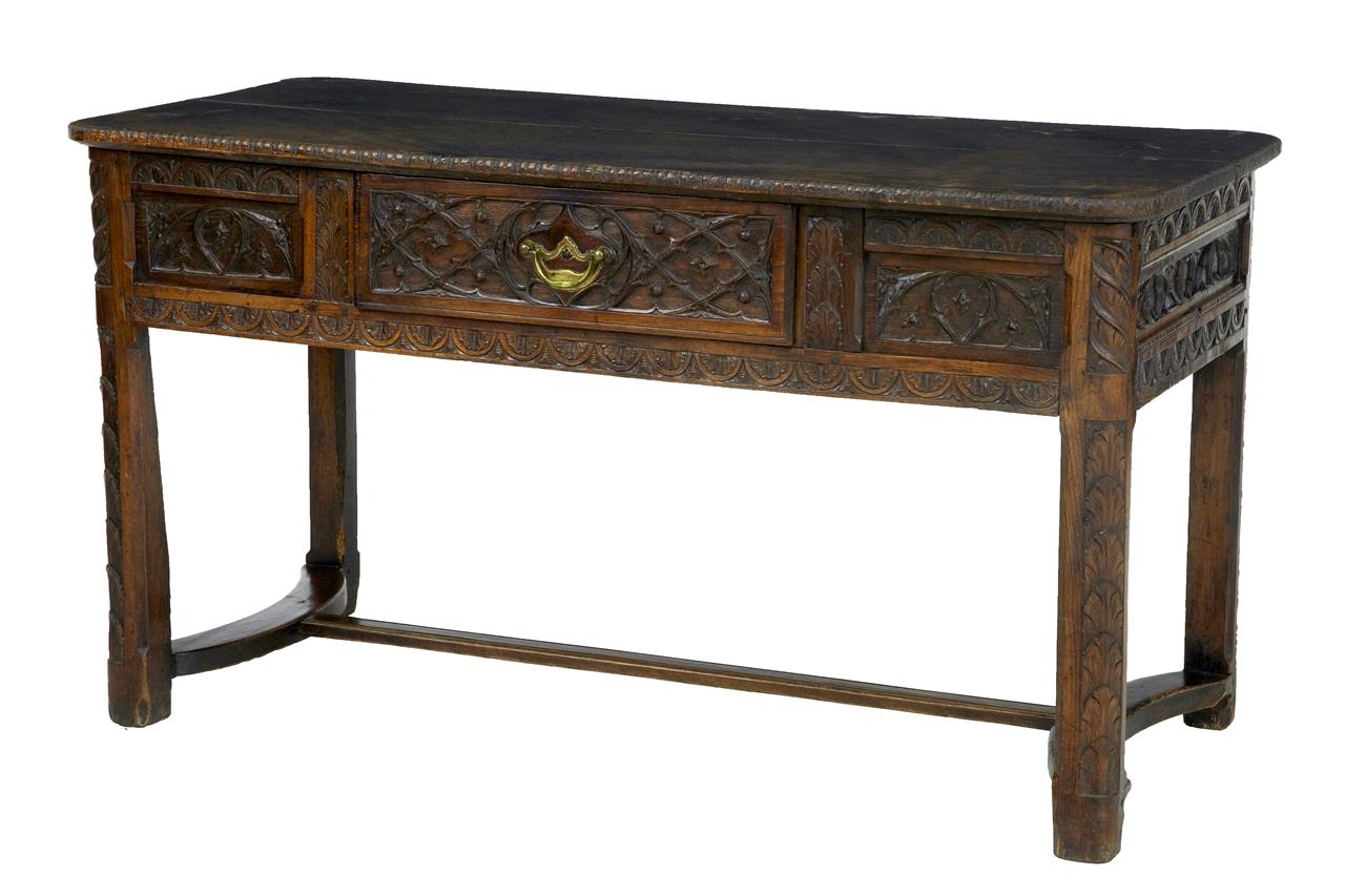 Early 19th Century French Gothic Revival Carved Oak Table c.1820 (1 of 1)