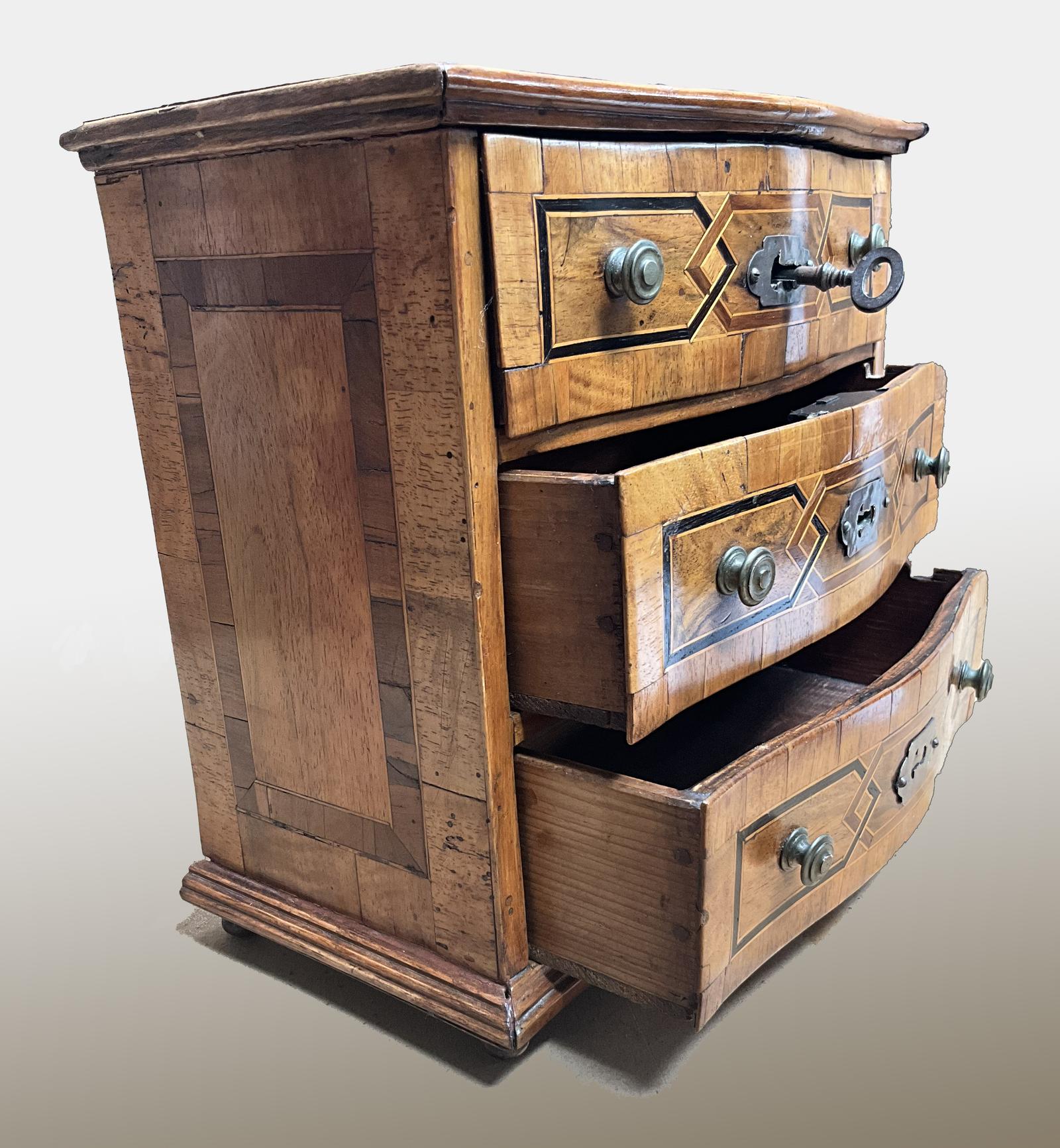 Early 19th Century Inlaid Walnut Serpentine Fronted Miniature Chest of Drawers
