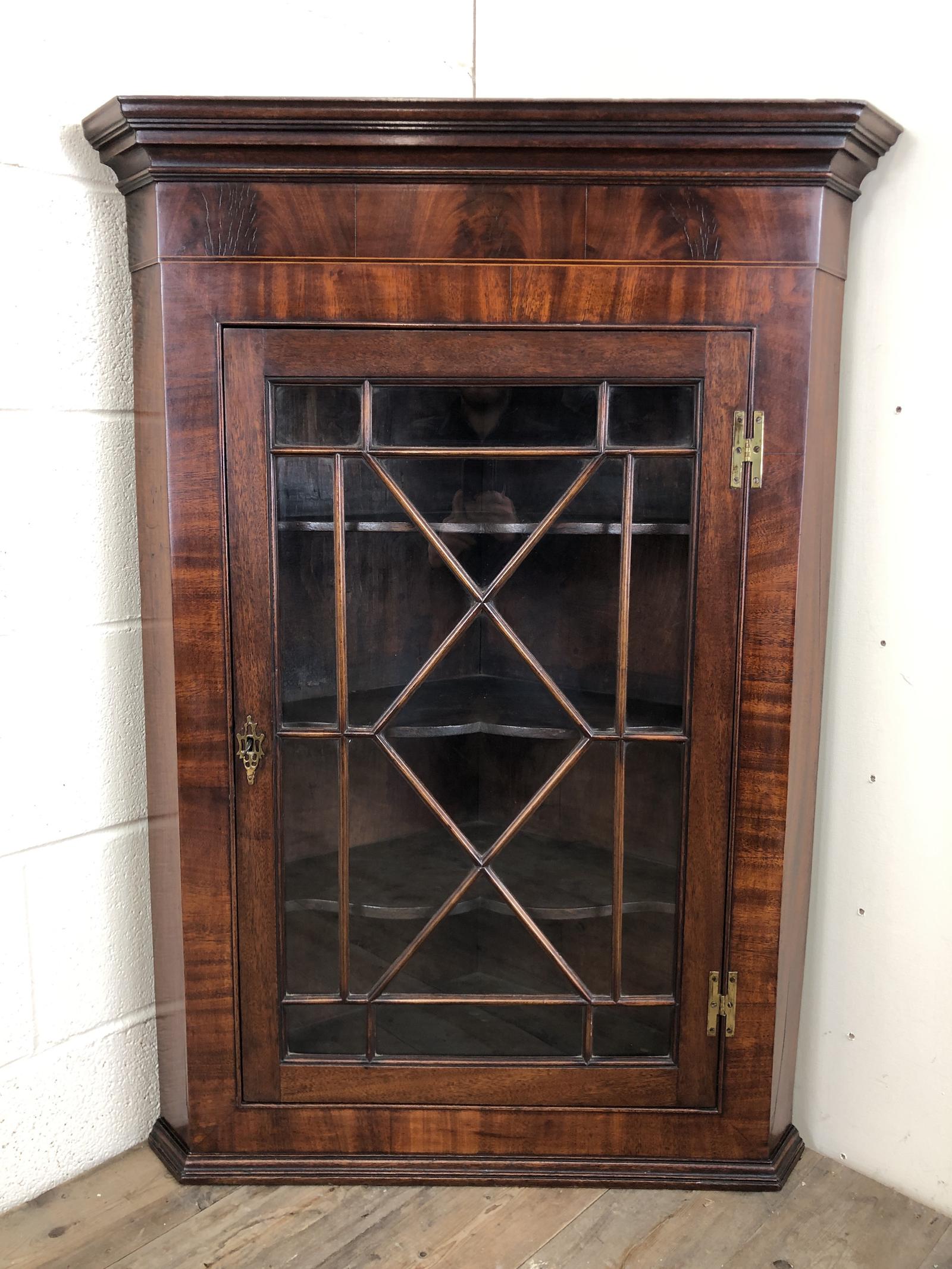 Early 19th Century Mahogany Glazed Hanging Corner Cupboard (1 of 6)