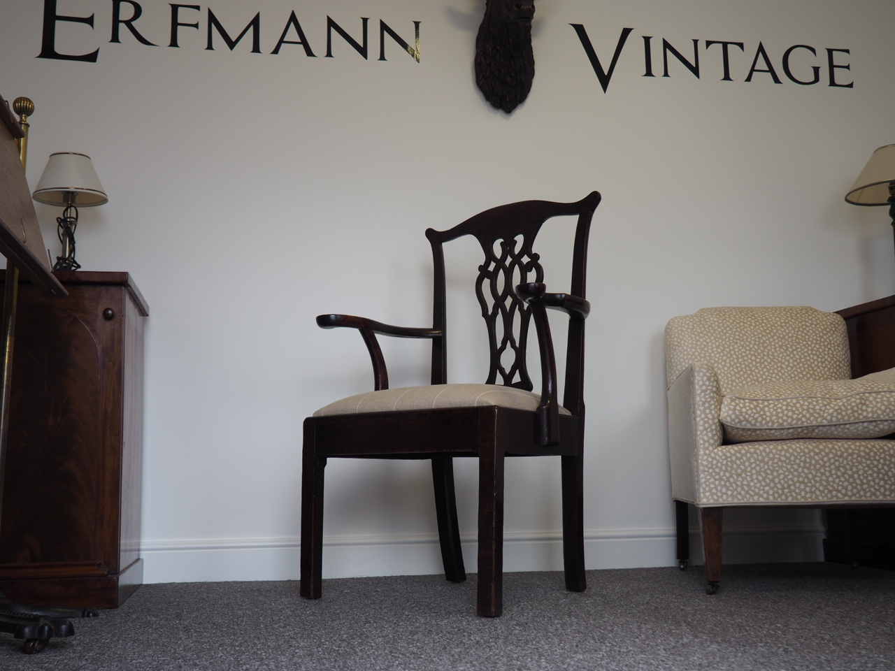 Early 19th Century Oak Elbow Occasional Chair Reupholstered