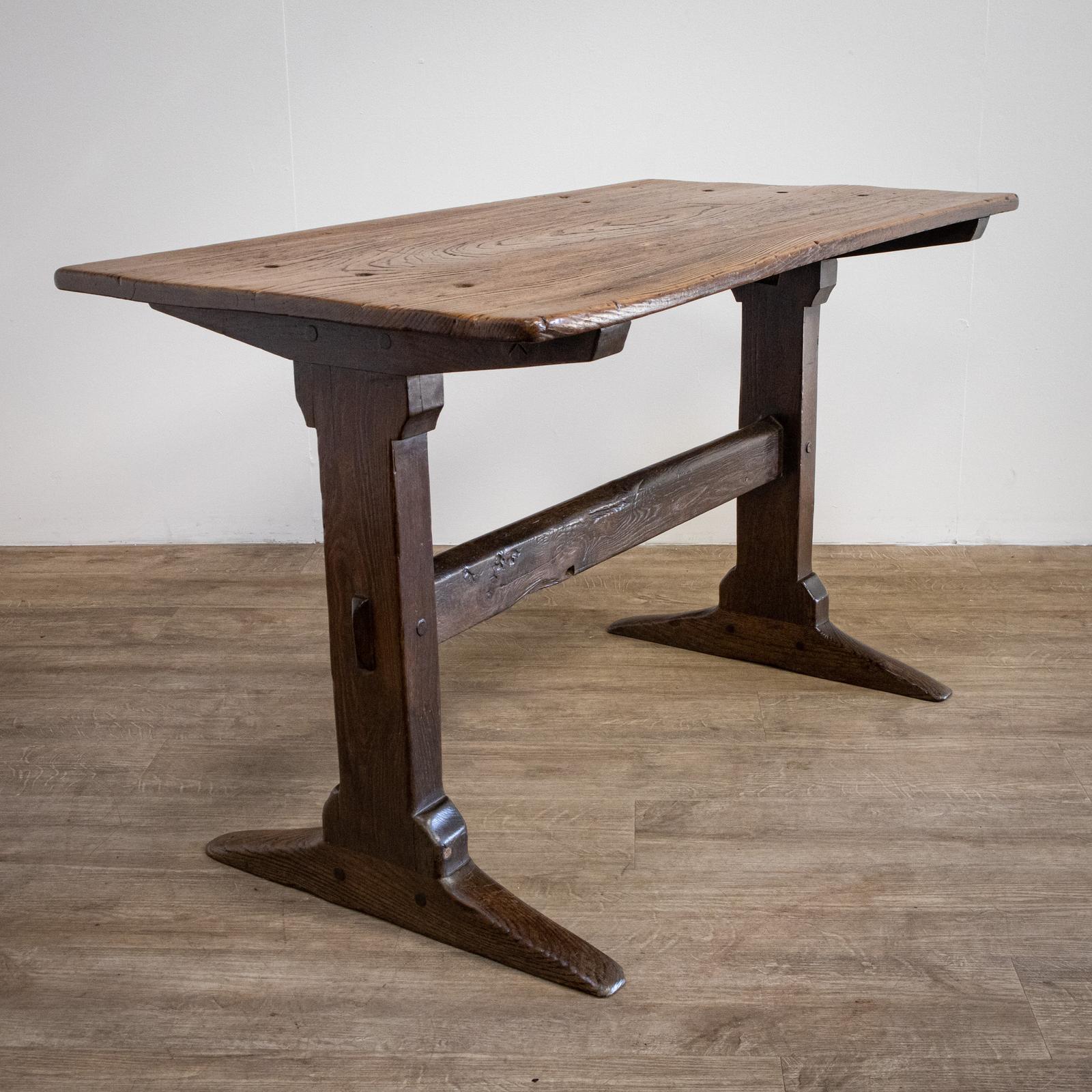 Early 19th Century Oak & Elm Trestle Tavern Table