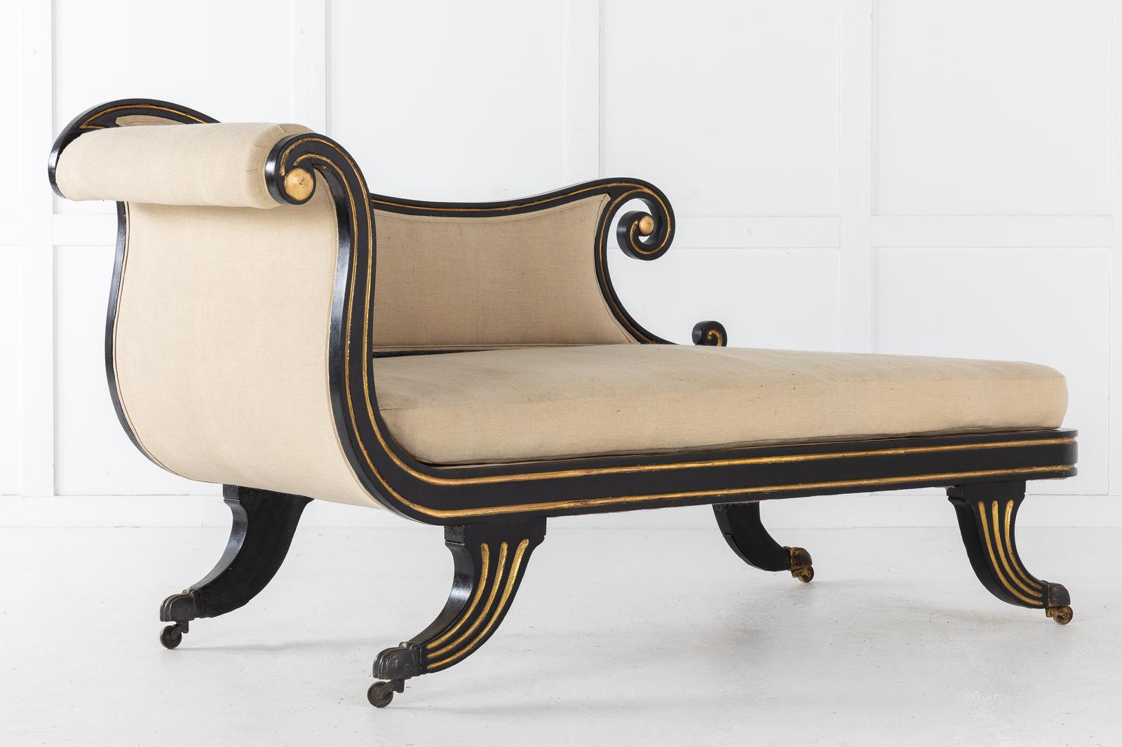 Early 19th Century Regency Ebonised and Gilt Chaise Longue