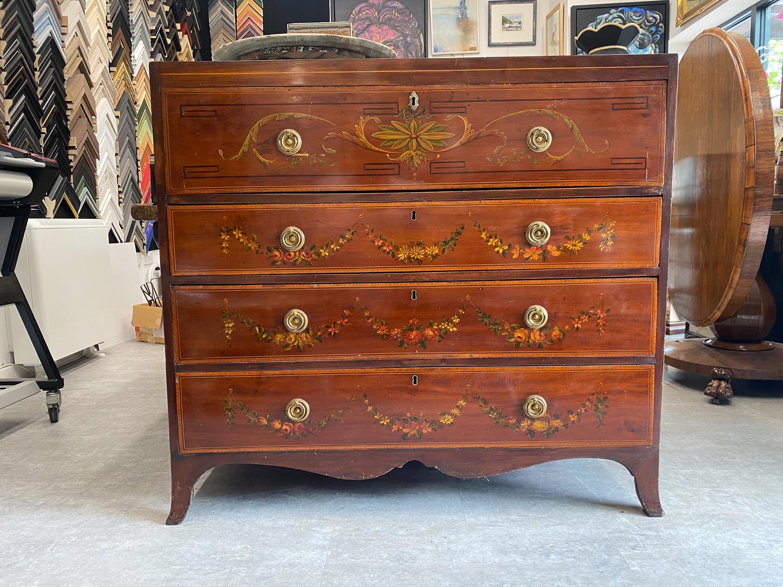 Early 19th Century Sheraton Revival Style Painted Mahogany Secretaire Chest