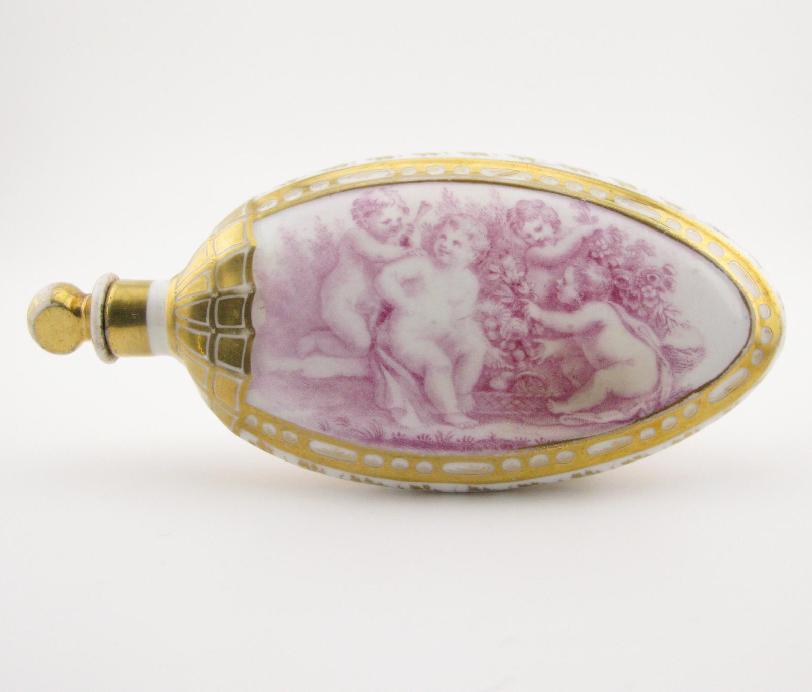 Early 19th Century Unusual Porcelain Navette Shape Scent Bottle