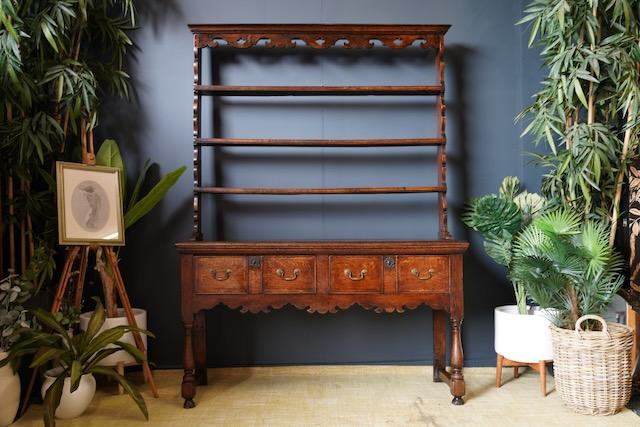 Early 19th Century Welsh Dresser Solid Oak Brass Bail Pulls
