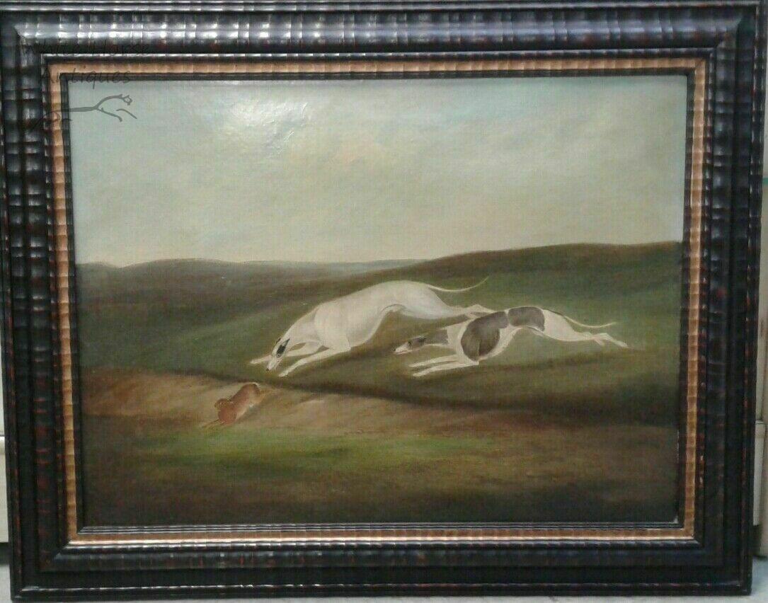 Early 19th Samuel Spode English Lurchers Hare Coursing Hunting Oil on Canvas