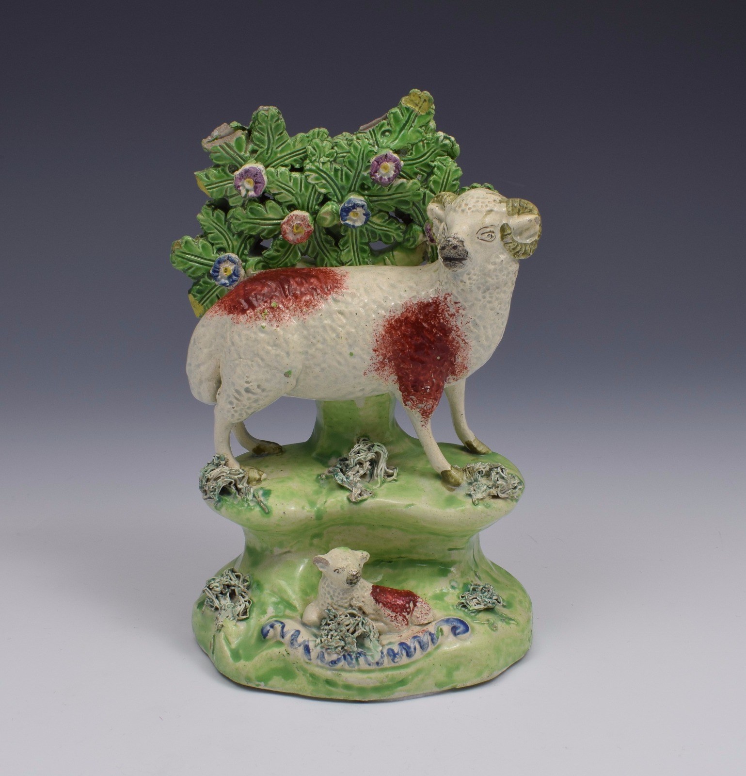 Early 19thc Walton Staffordshire Pearlware Bocage Group Ram & Lamb