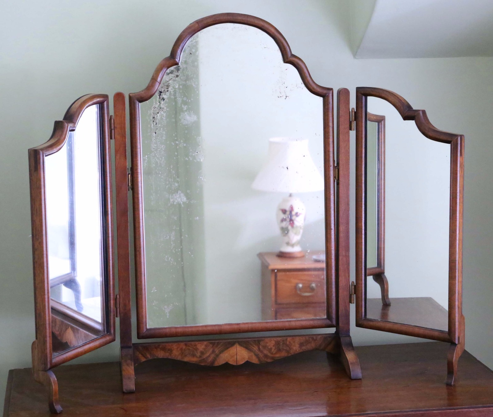 Early 20C Walnut Dressing Table Triple Triptych Toilet Mirror (1 of 1)