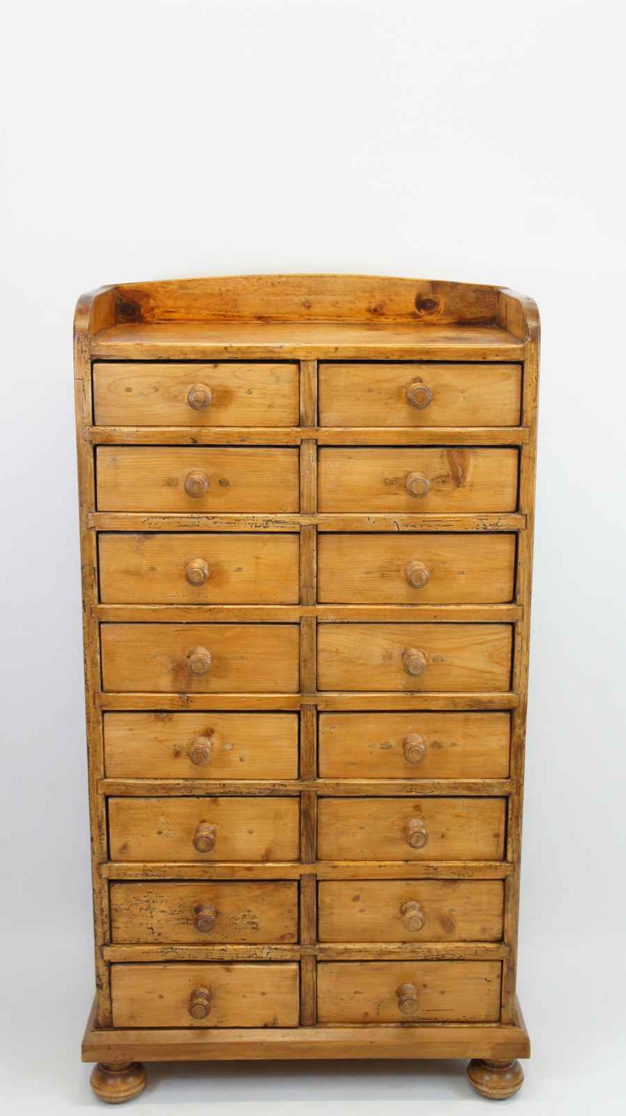 Early 20th C Pine Chest or Bank of 16 Small Drawers