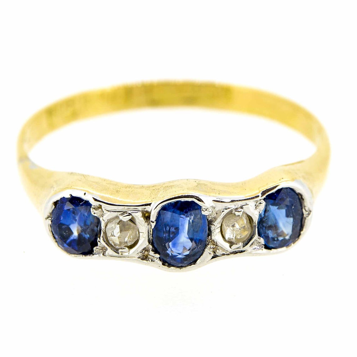 Early 20th Century 18ct Yellow Gold Sapphire & Diamond Five Stone Ring