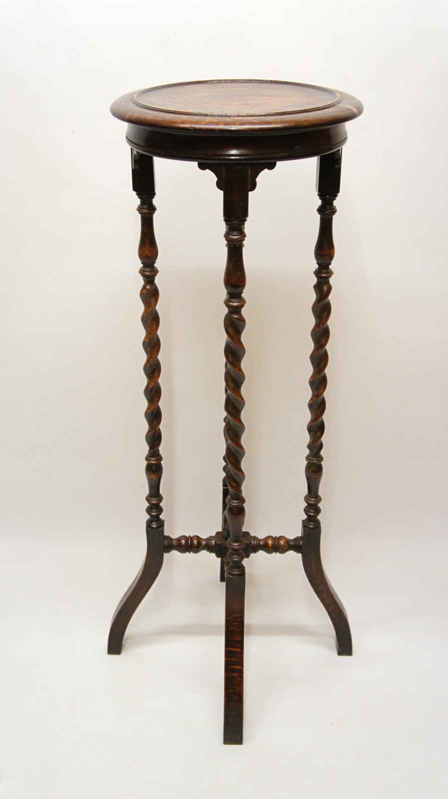 Early 20th Century 2 Tier Decorative Oak Torchere, Plant Stand