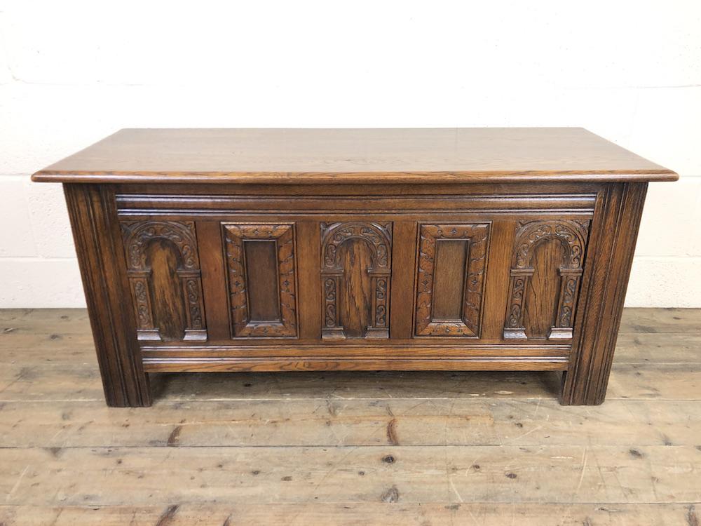 Early 20th Century Antique Carved Oak Blanket Box (1 of 9)