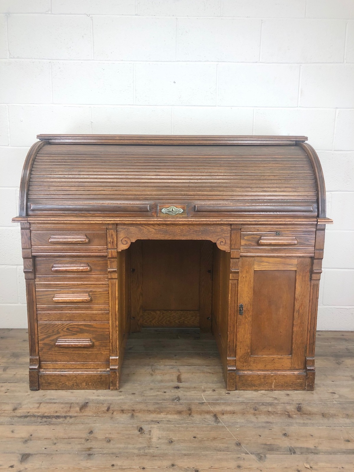 Early 20th Century Antique Oak Roll Top Desk (1 of 23)