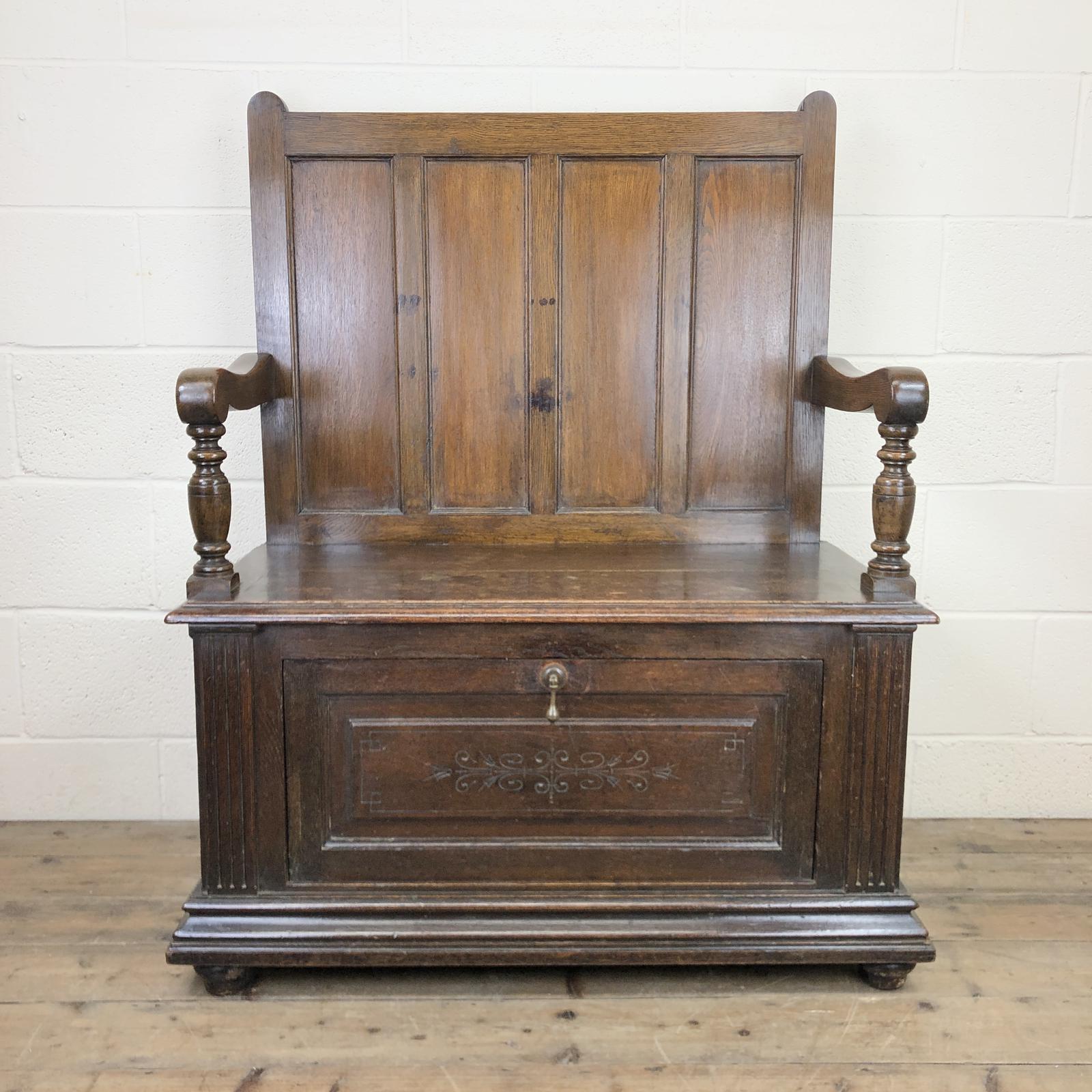 Early 20th Century Antique Oak Settle Bench (1 of 10)