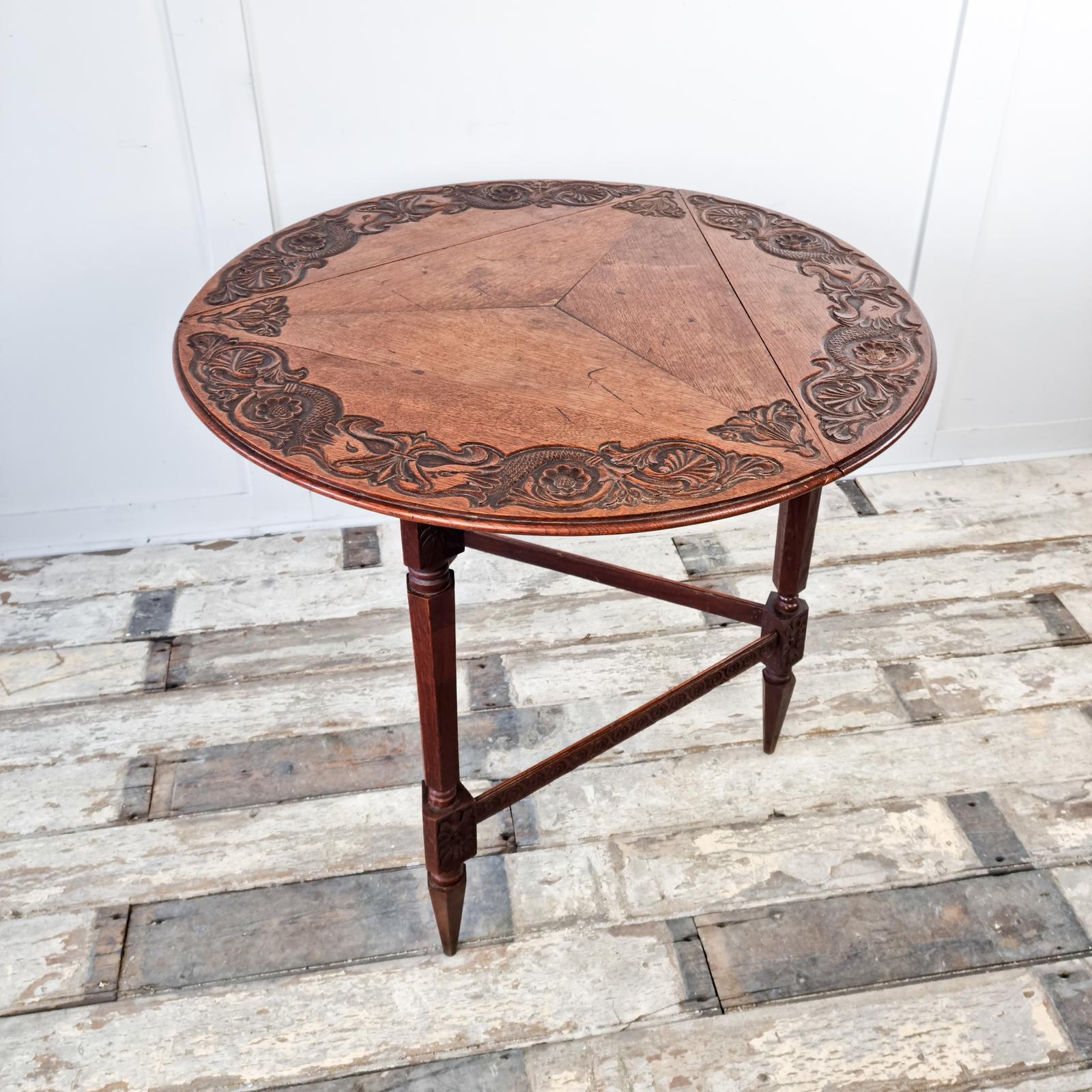 Early 20th Century Antique Triform Drop Leaf Oak Occasional Table