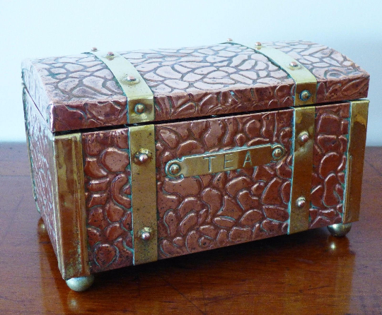 Early 20th Century Arts & Crafts Style Copper & Brass Covered Tea Caddy