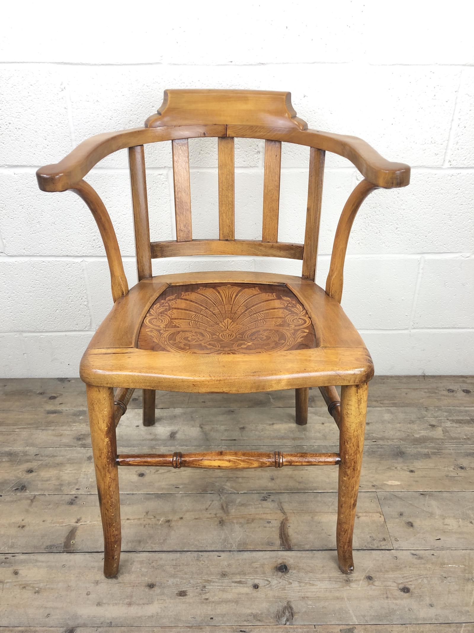 Early 20th Century Beech Smoker’s Chair with Pokerwork Seat (M-1591) (1 of 8)