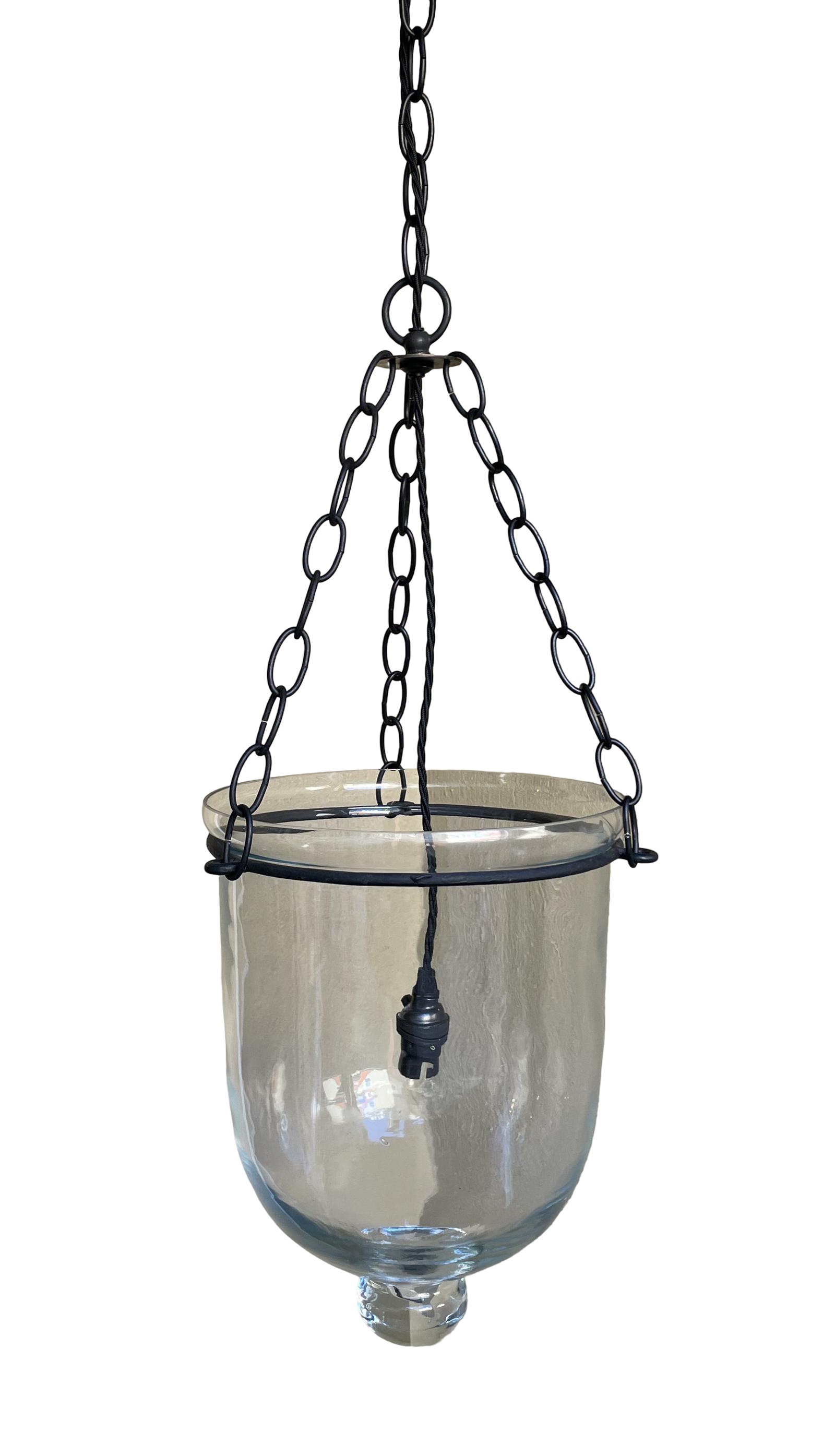 An early twentieth century bell jar hanging lantern with fantastic original hand blown shade.