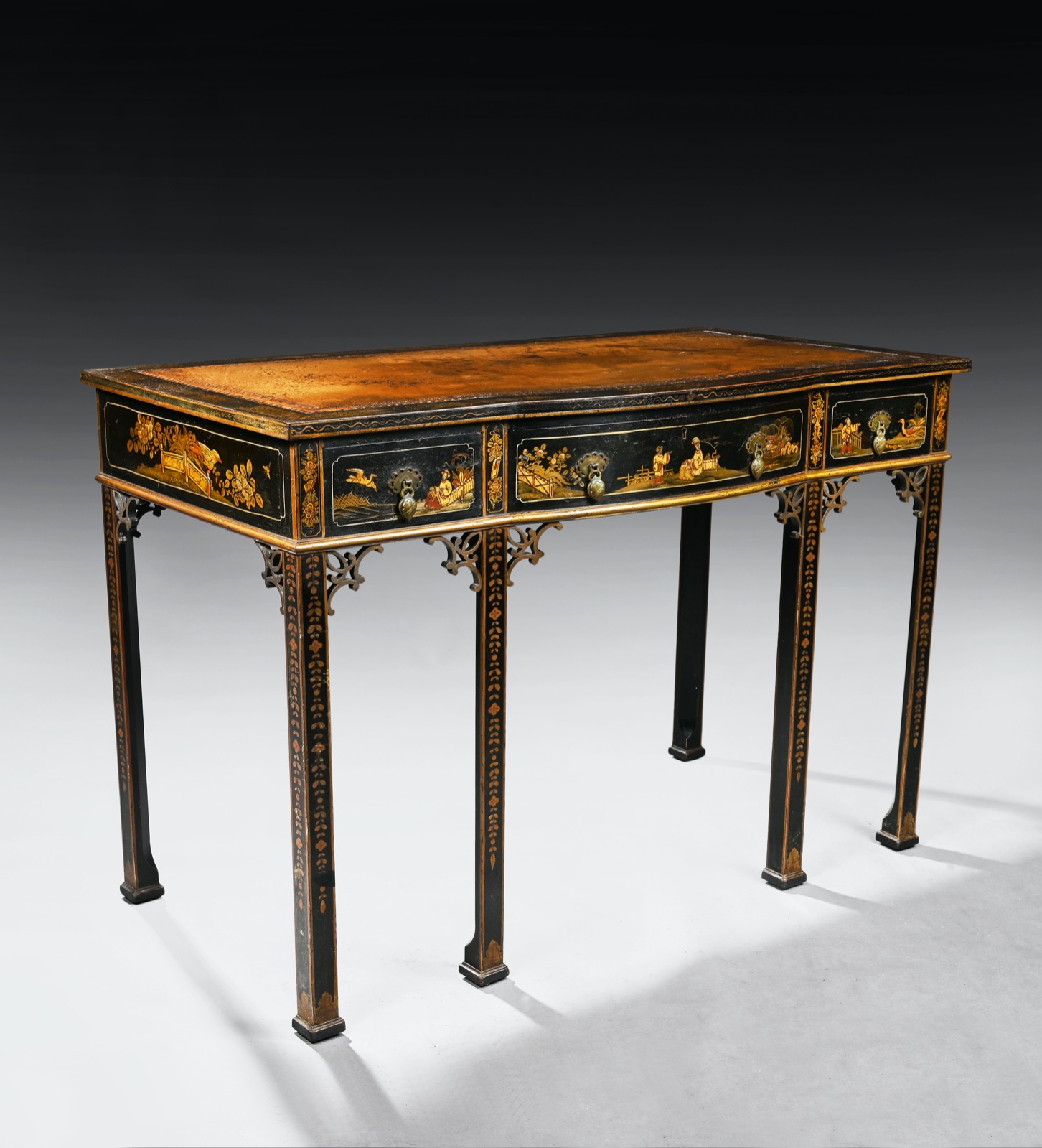 Early 20th Century Black Lacquered Chinoiserie Writing Table (1 of 1)