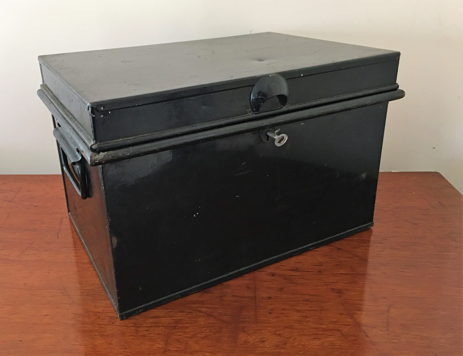 Early 20th Century Black Painted Metal Deed / Document Box with Key