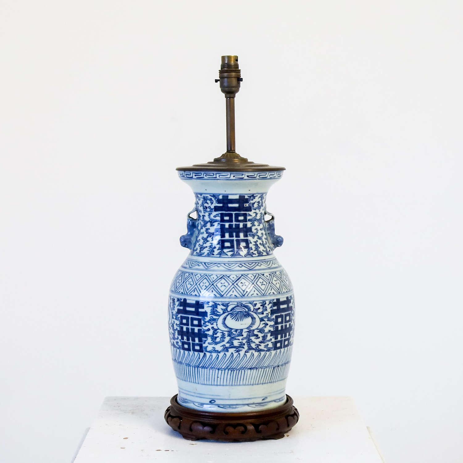Early 20th Century Blue & White Oriental Vase Converted to Lamp