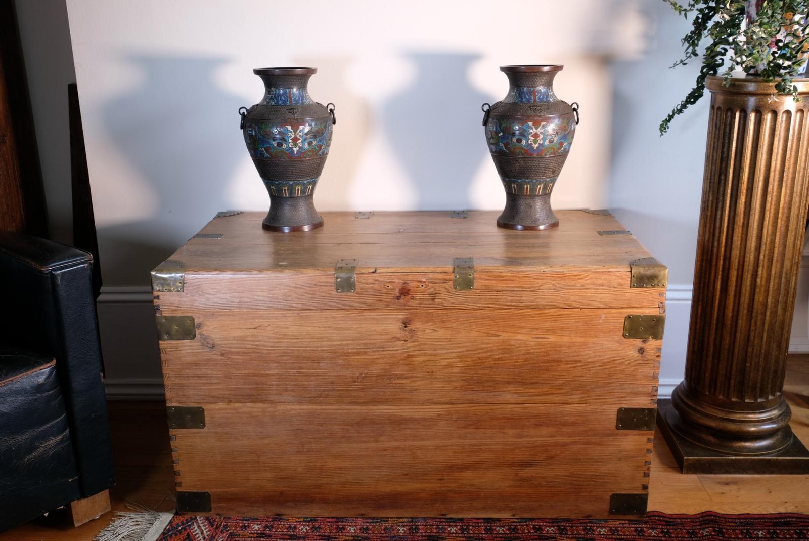 Early 20th Century Brass Bound Pine Trunk
