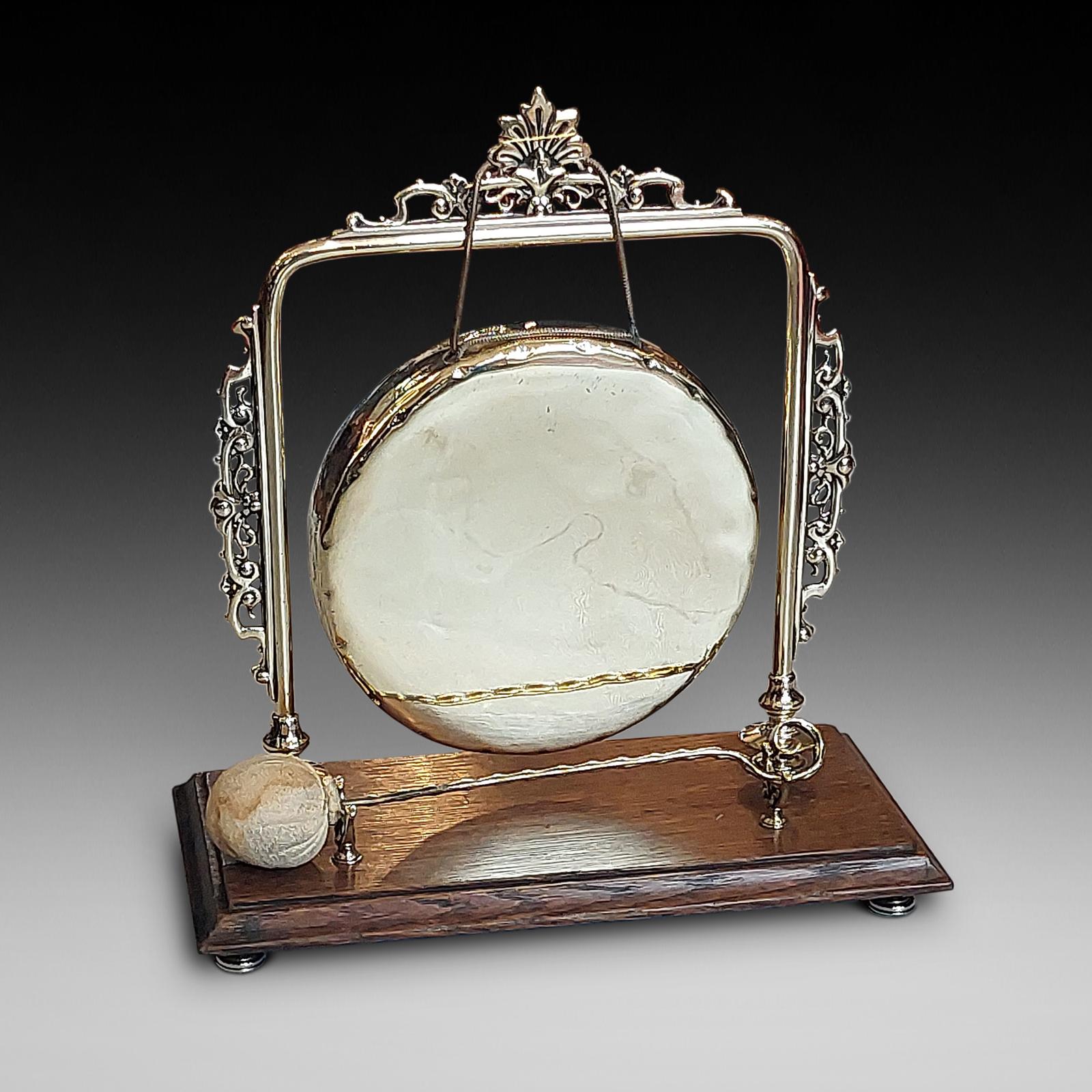 Early 20th Century Brass Gong on Oak Base (1 of 6)